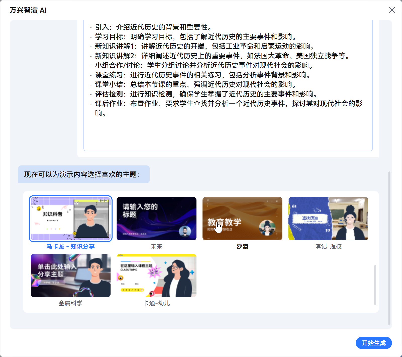 确认大纲信息后即可选择您心意的模板进入下一步;